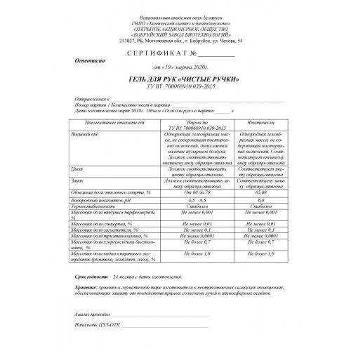Гель для рук «Чистые ручки» представляет собой однородную
