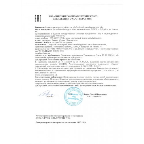 Производится по ТУ BY 700068910.039-2015