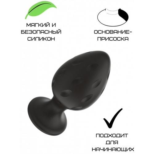 Черная анальная пробка обладает уникальным рельефом, благодаря которому стимуляция будет ярче!