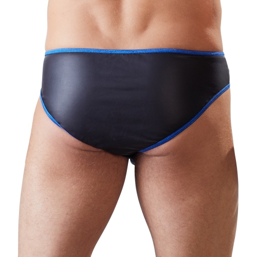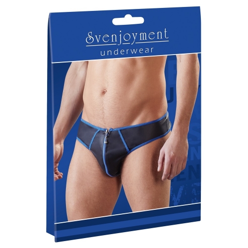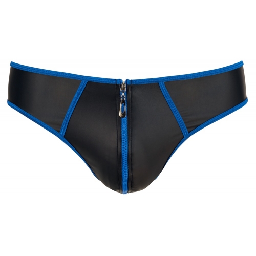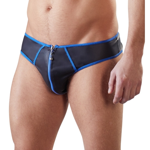 Модные чёрные матовые трусы с синим кантом и практичной и декоративной передней молнией!