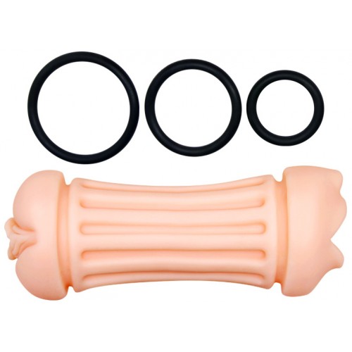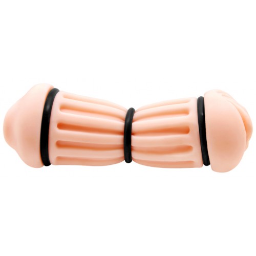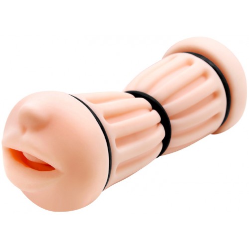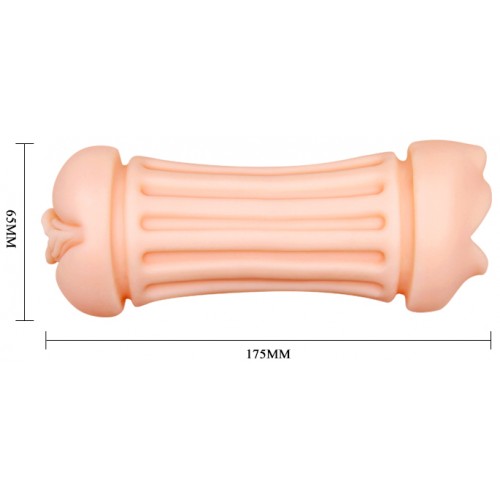 Компактный мастурбатор с двумя отверстиями, имитирующими нежный ротик с губками и язычком и манящую вагину, не заставит вас скучать.