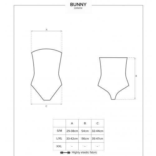 Детали: маска с кроличьими ушками, эффектное колье с бантом, классический боди черного цвета, визуально делающее вас стройнее, удобные съемные подвязки с регулируемыми бретелями, красивые бантики, украшающие подвязки, сексуальные чулки из нежной сетки, красивая эластичная ткань Multistretch.