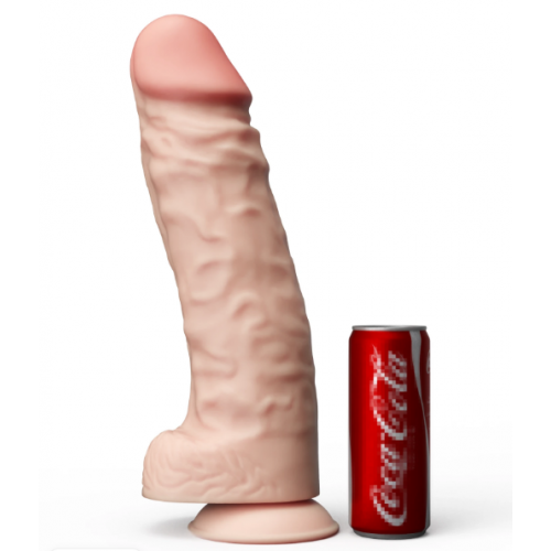 Огромный реалистичный фаллоимитатор выполнен в виде возбужденного мужского члена. Выраженная розовая головка, очерченная уздечка, прорисованные набухшие от возбуждения вены и волнующая мошонка. Рельеф фаллоса не только возбуждающе притягателен, но и дарит дополнительную стимуляцию эрогенных зон влагалища и ануса.