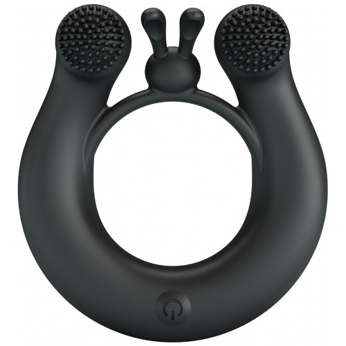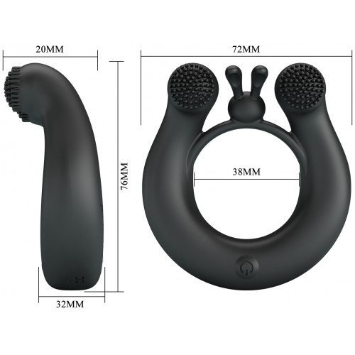По обеим сторонам кольца расположены два моторчика, которые обеспечивают 12 дразнящих режимов вибрации, заставляя кончики стимуляторов мерцать и ласкать самые чувствительные точки партнера!