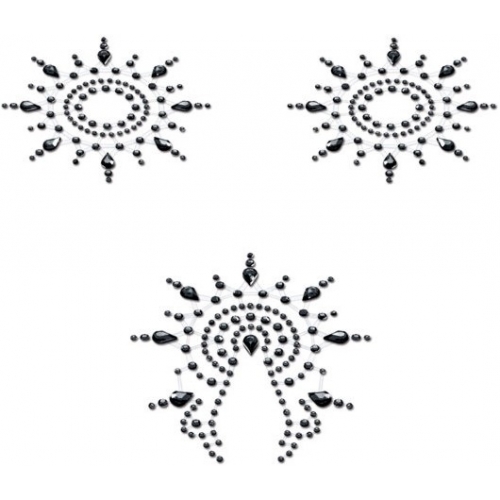 В комплект входят 2 наклейки на соски и 1 наклейка на лобок из множества кристаллов,