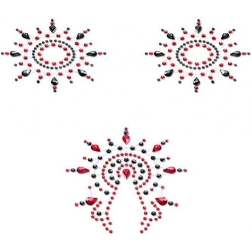 В комплект входят 2 наклейки на соски и 1 наклейка на лобок из множества кристаллов,