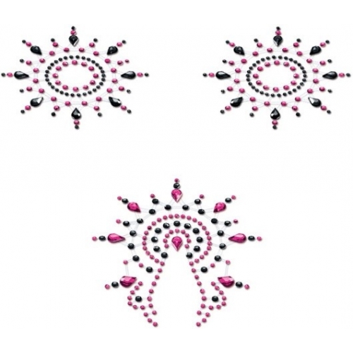 В комплект входят 2 наклейки на соски и 1 наклейка на лобок из множества кристаллов,