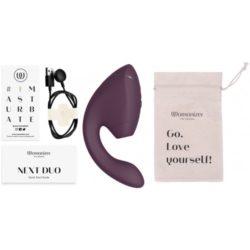 Womanizer Next Duo – передовой двойной стимулятор, объединяющий технологию 3D Pleasure Air и Dynamic Dimension Drive от Womanizer с глубокими вибрациями точки G от We-Vibe!