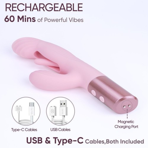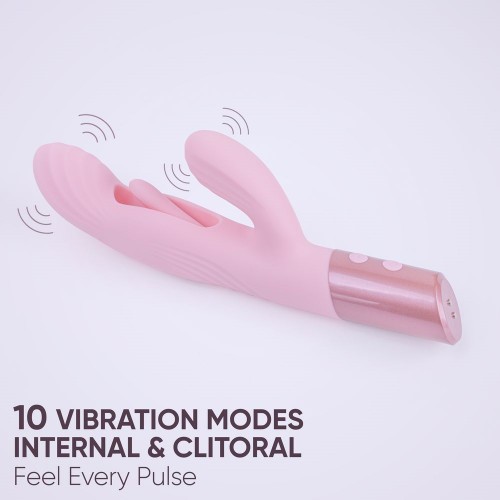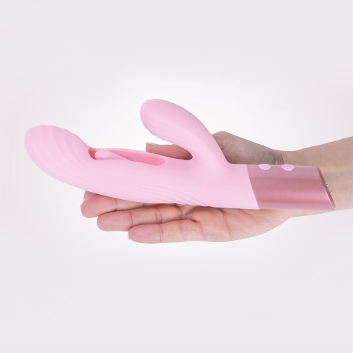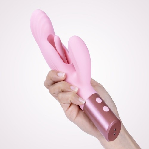 Эта игрушка разработана для одновременной стимуляции зоны G и клитора: плавные изгибы корпуса обеспечивают направленное внутреннее воздействие, а гибкий «кролик» дарит деликатные, но выразительные вибрации.